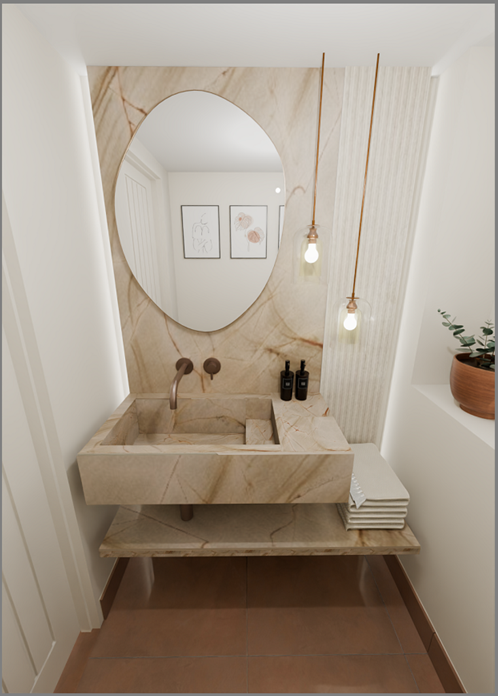 Bringing clever lighting creates a beautiful feature point behind the basin.